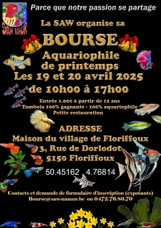 Belgique - Floriffoux - 19 & 20 avril - Bourse de printemps de la Société Aquariophile Wallonne - Namur